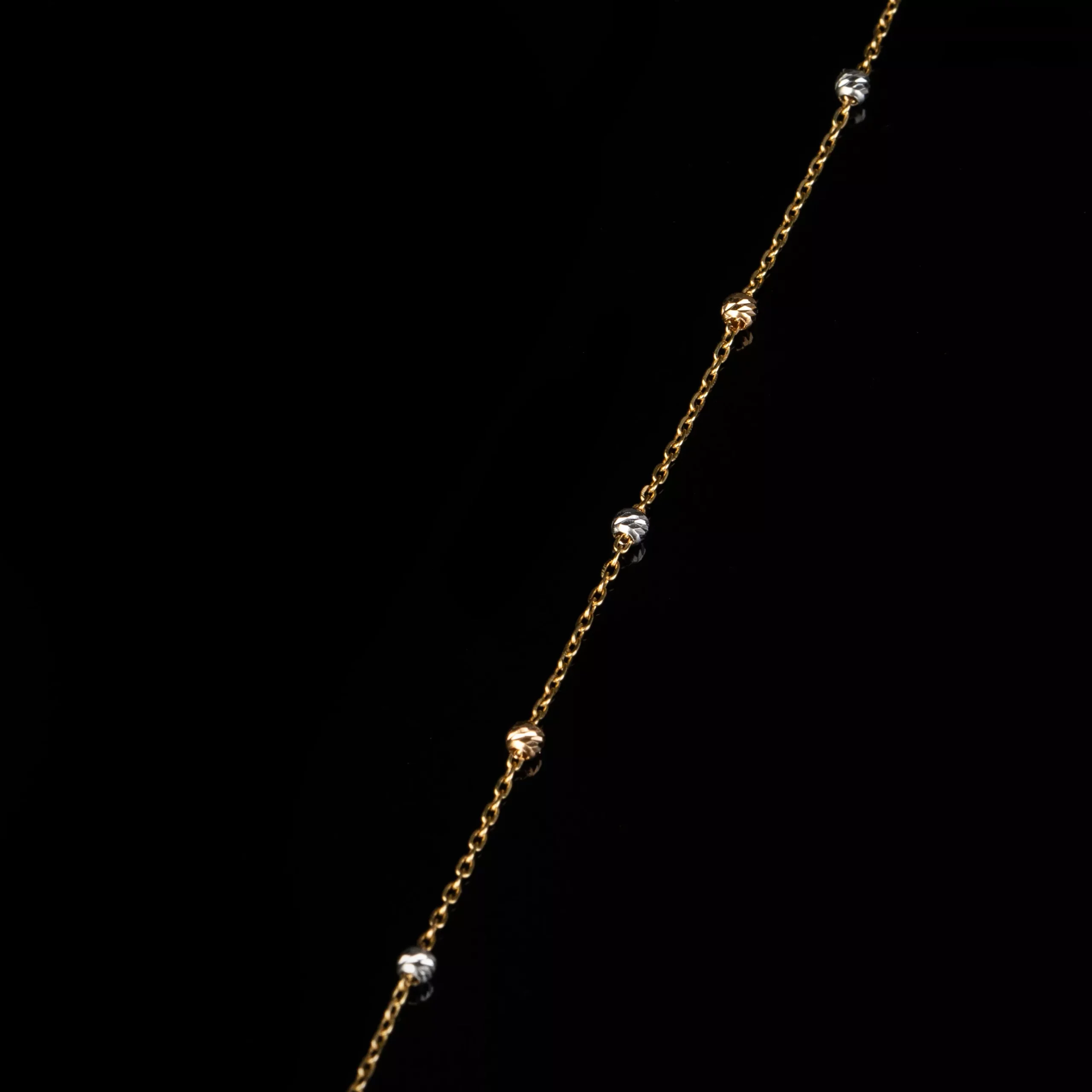 دستبند گوی یک از طرح‌های محبوب و کلاسیک در جواهرات است که با طراحی ساده و در عین حال زیبا، توجه بسیاری از علاقه‌مندان به طلا و جواهر را به خود جلب کرده است.این دستبند معمولاً شامل گوی‌های طلایی یا نقره‌ای است که در طول زنجیر به صورت متقارن و منظم قرار گرفته‌اند. طراحی ساده و کلاسیک این مدل، آن را برای هر سلیقه و استایلی مناسب می‌کند.دستبند گوی به دلیل سادگی و جذابیت آن، می‌تواند در موقعیت‌های مختلفی مانند مجالس رسمی، روزمره یا حتی به عنوان یک هدیه خاص استفاده شود.