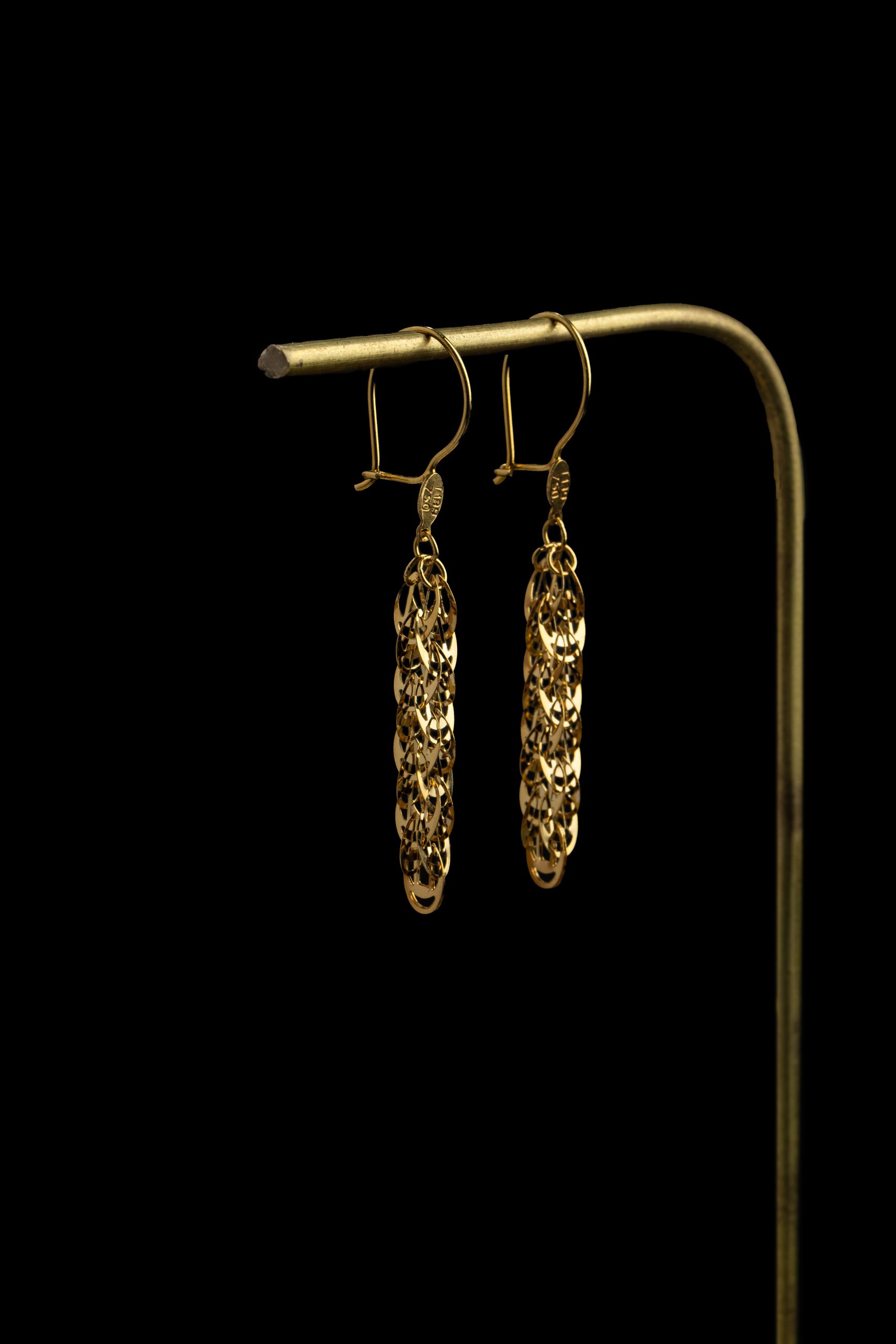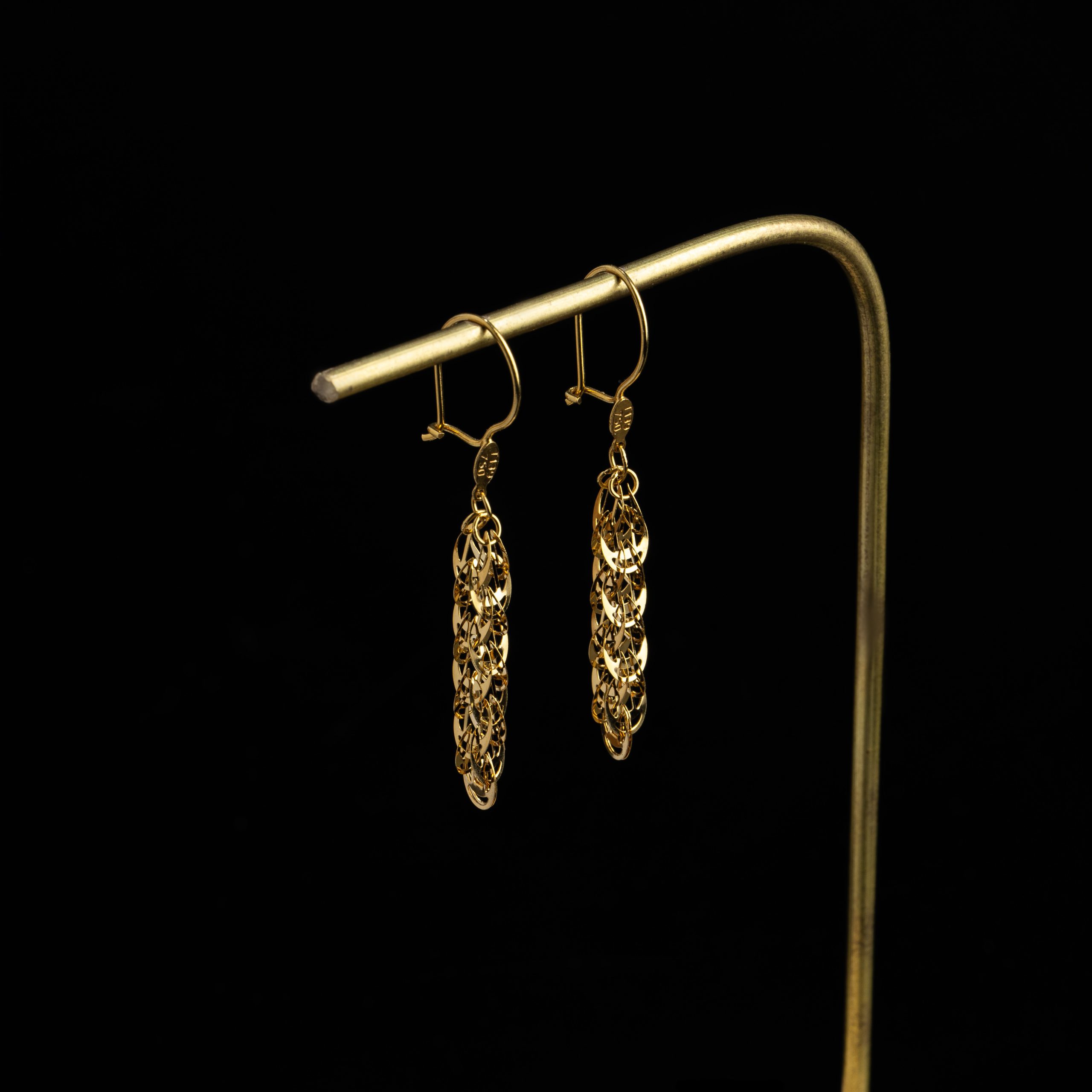 گوشواره پرکی یک نوع گوشواره زیبا و جذاب است که با استفاده از تکه های طلای بریده شده به صورت پرکی تزیین شده است.